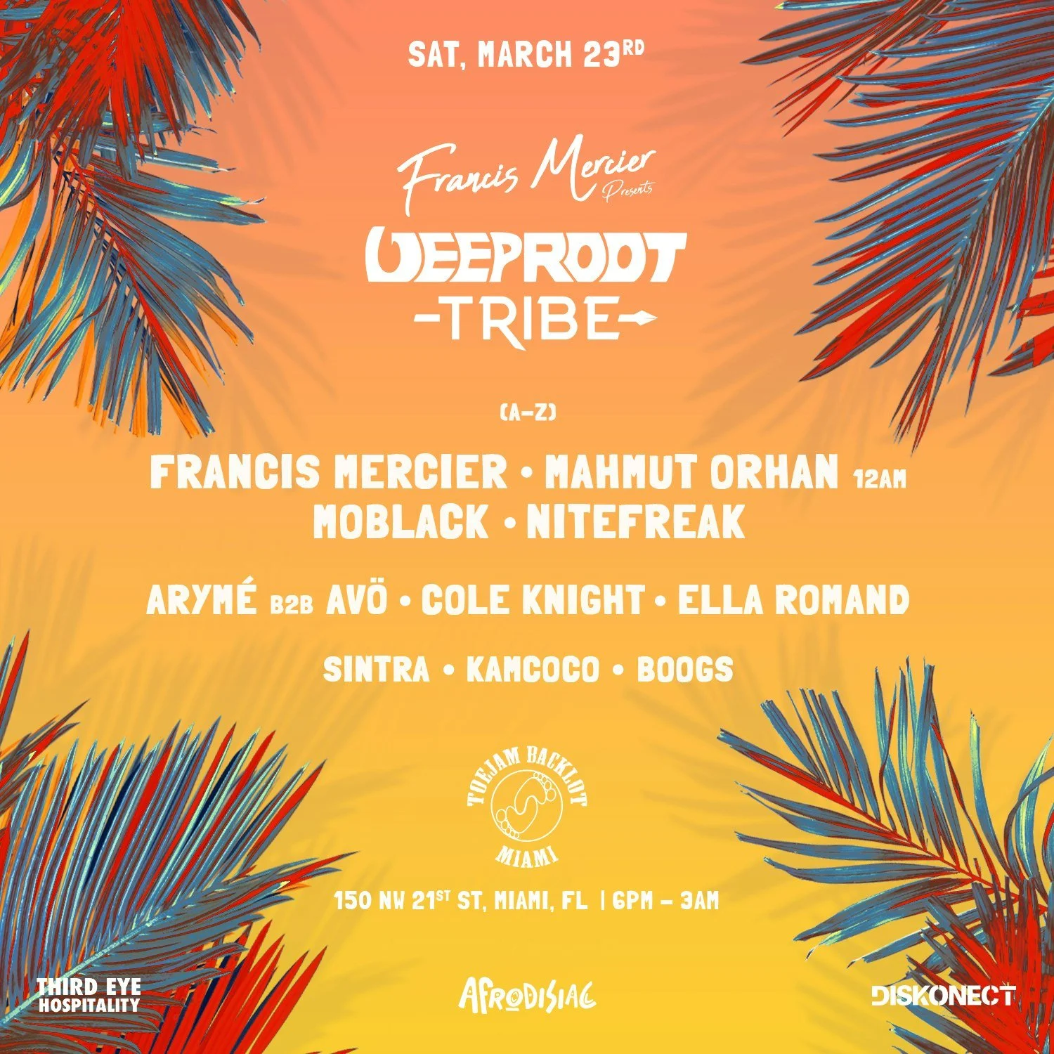 Francis Mercier Presents: Deep Root Tribe MMW 2024 Saturday, March 23, 2024 6:00 PM Sunday, March 24, 2024 2:00 AM 150 Northwest 21st Street Miami, FL, 33127 United States (map) Google Calendar ICS Buy Tickets