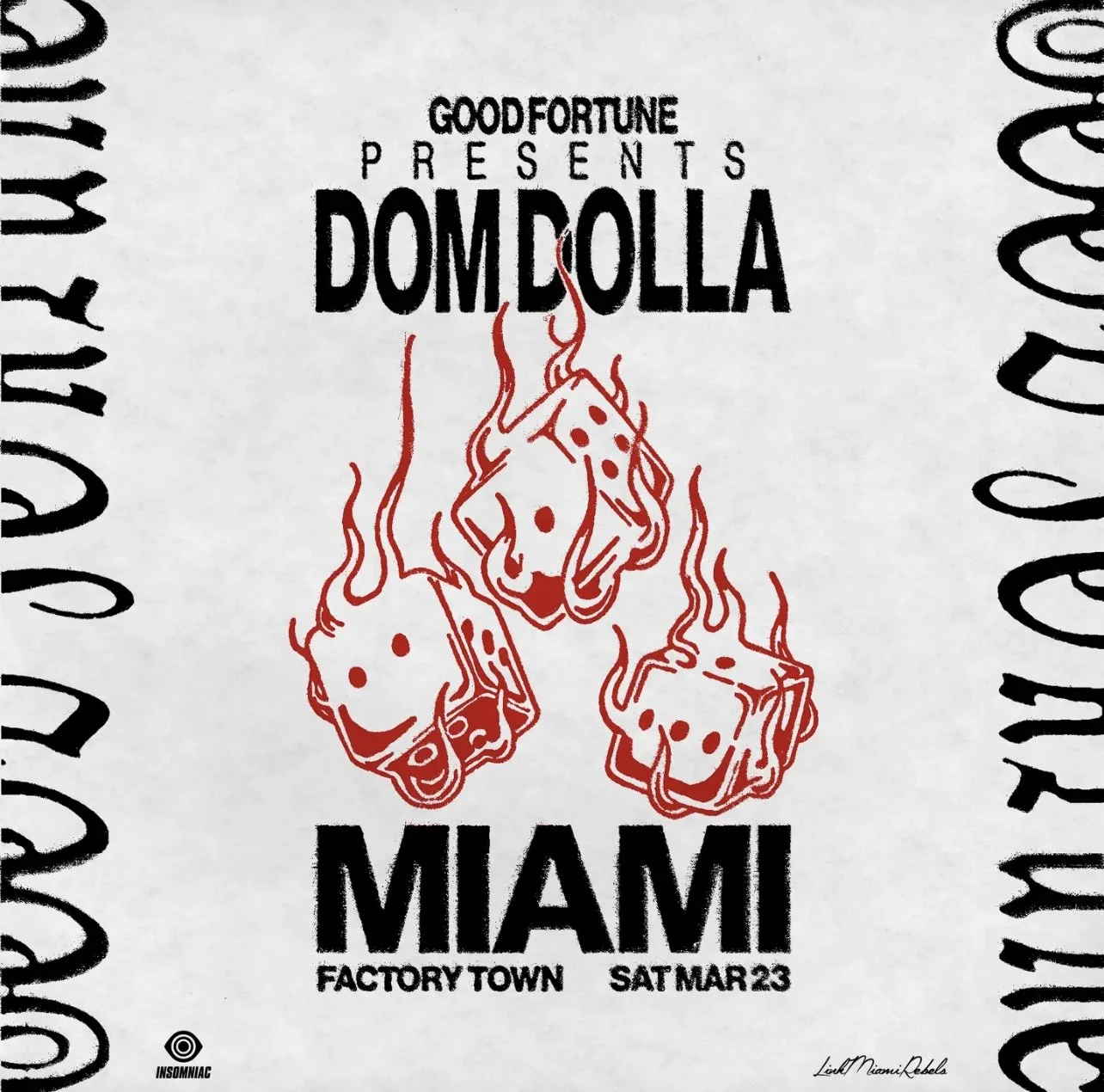 Good Fortune Presents Dom Dolla at Factory Town Saturday, March 23, 2024 7:00 PM Sunday, March 24, 2024 7:00 AM 4800 Northwest 37th Avenue Miami, FL, 33142 United States (map) Google Calendar ICS Saturday brings good fortune to Factory Town as Dom Dolla takes the stage. Get ready for a night of infectious beats and a lively atmosphere that defines the essence of Miami Music Week. Buy Tickets