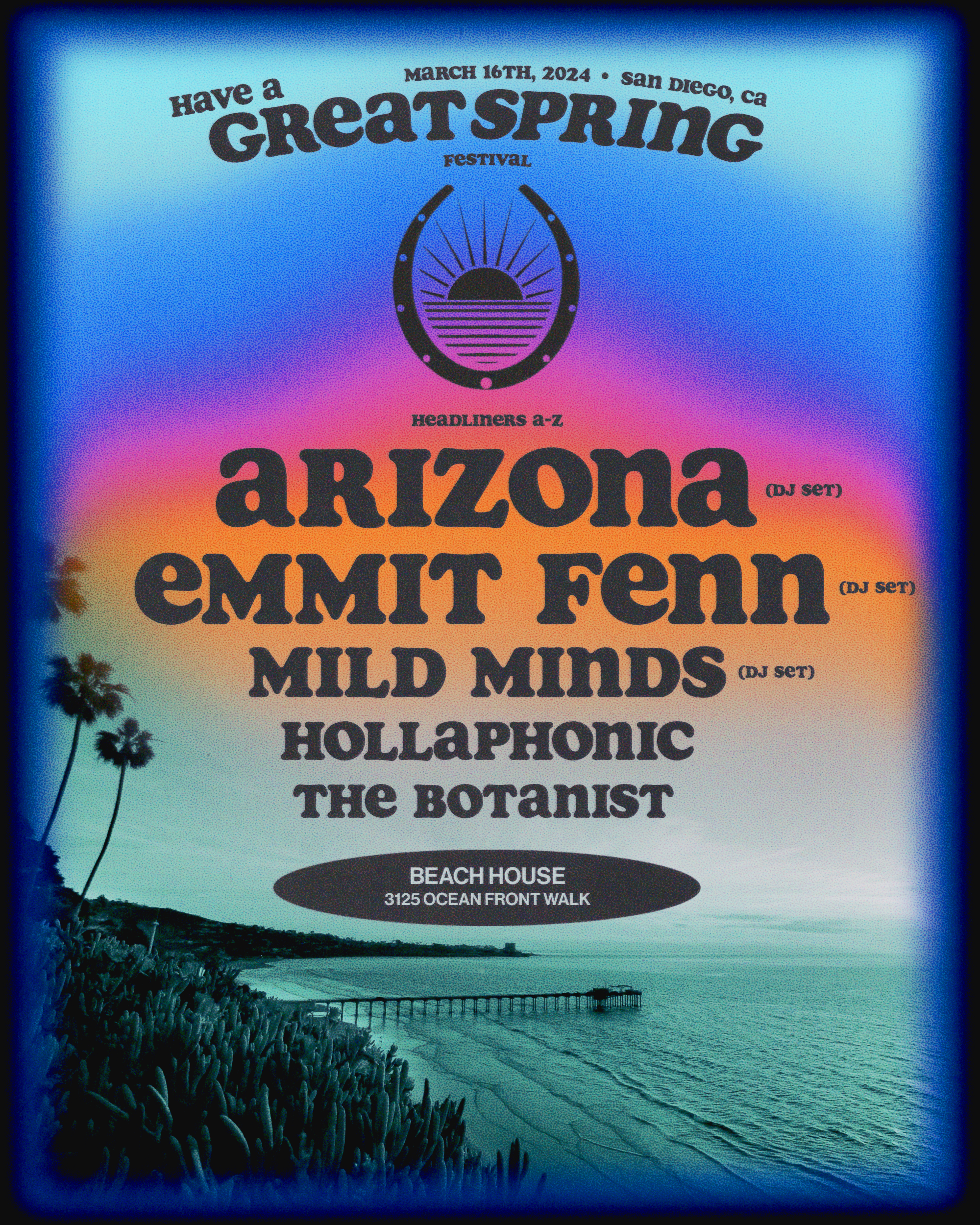 HAGS (Have A Great Spring) Fest 2024 - San Diego, CA Saturday, March 16, 2024 12:00 PM Sunday, March 17, 2024 2:00 AM Google Calendar ICS HAGS (Have A Great Spring) Fest.San Diego, California. Sunshine on the warm West Coast. Immaculate vibes, and even better music. March 16th, 2024.