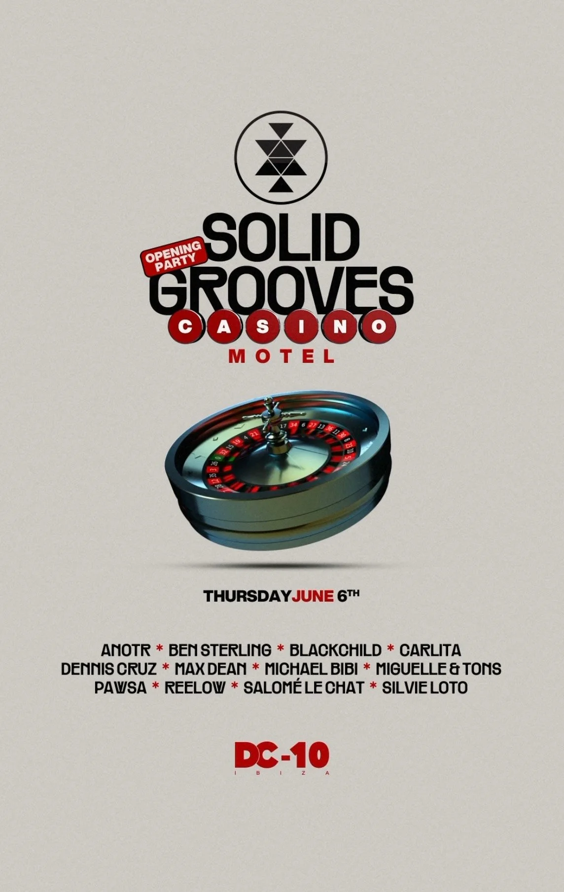 Solid Grooves presents Casino Motel as the Opening Party at the Iconic DC-10 in Ibiza, Spain. This June 6th, 2024.