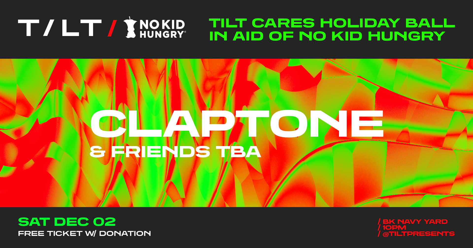 TILT Cares Holiday Ball with Claptone Saturday, December 2, 2023 10:00 PM Sunday, December 3, 2023 12:00 AM Brooklyn Navy Yard Brooklyn, NY United States (map) Google Calendar ICS Tickets