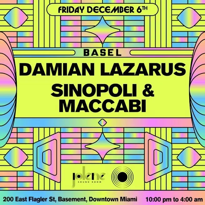 Darmon, Nic Fanciulli, Sebjak, and more bring laid-back house to this luxe beach club setting. It’s sunset, house music, and ocean views—basically Basel on a postcard.Damian Lazarus @ Jolene Sound Room