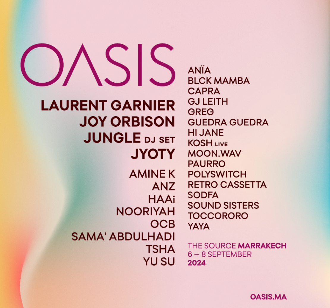 Oasis Festival 2024 takes place from 6-8 September 2024 at The Source in Marrakech. With the lineup heating up and more incredible artists still to come, tickets are set to fly. Stay tuned for the next wave of announcements and book tickets at oasis.ma.