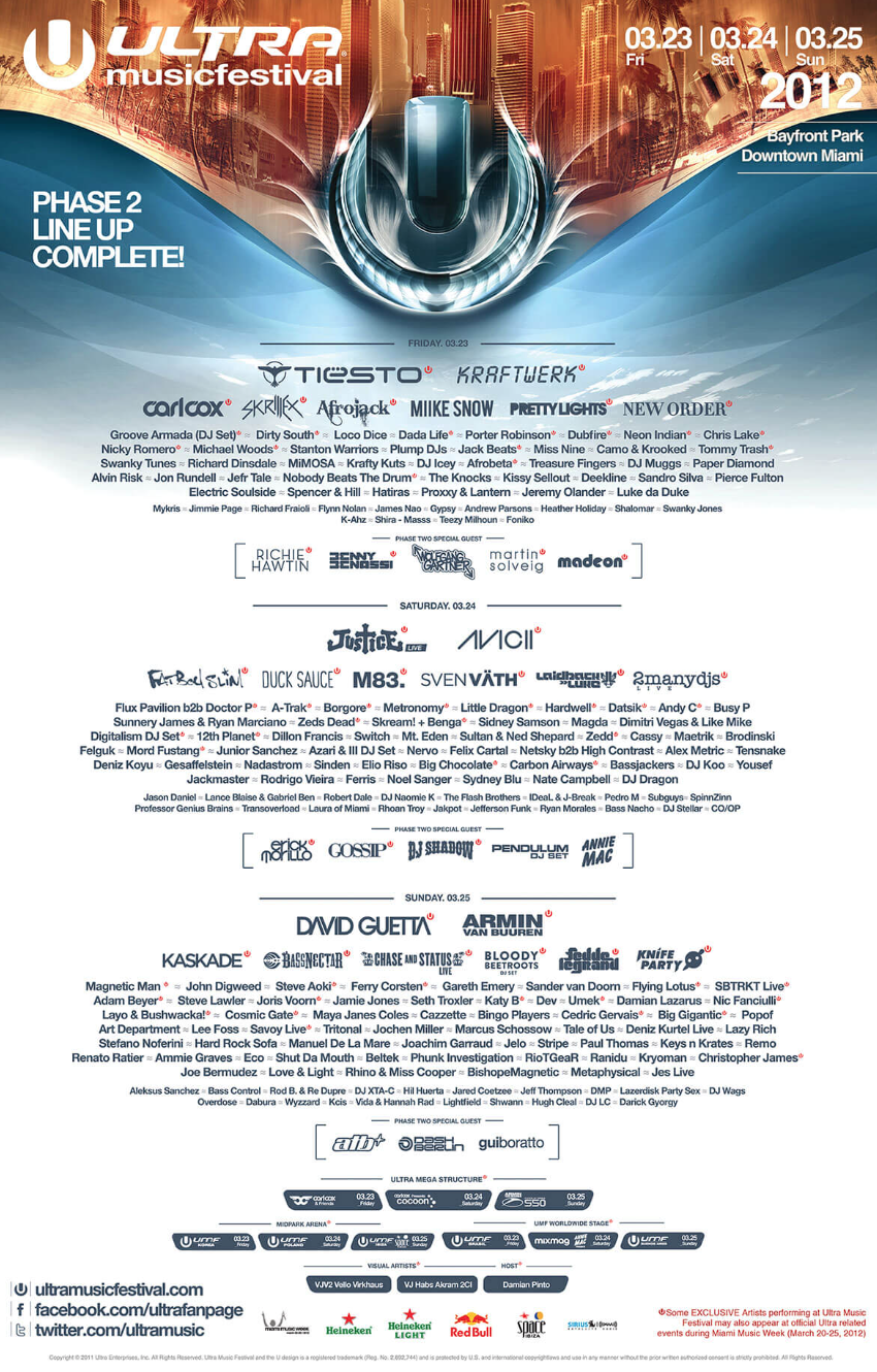 2012 is when Ultra began to live stream and record every set throughout the wild weekend for fans all over to join in and enjoy the festival from anywhere in the world - genius. Just look at how much even the line-up posters have evolved in such a short amount of time. Ultra was ultra-evolving.