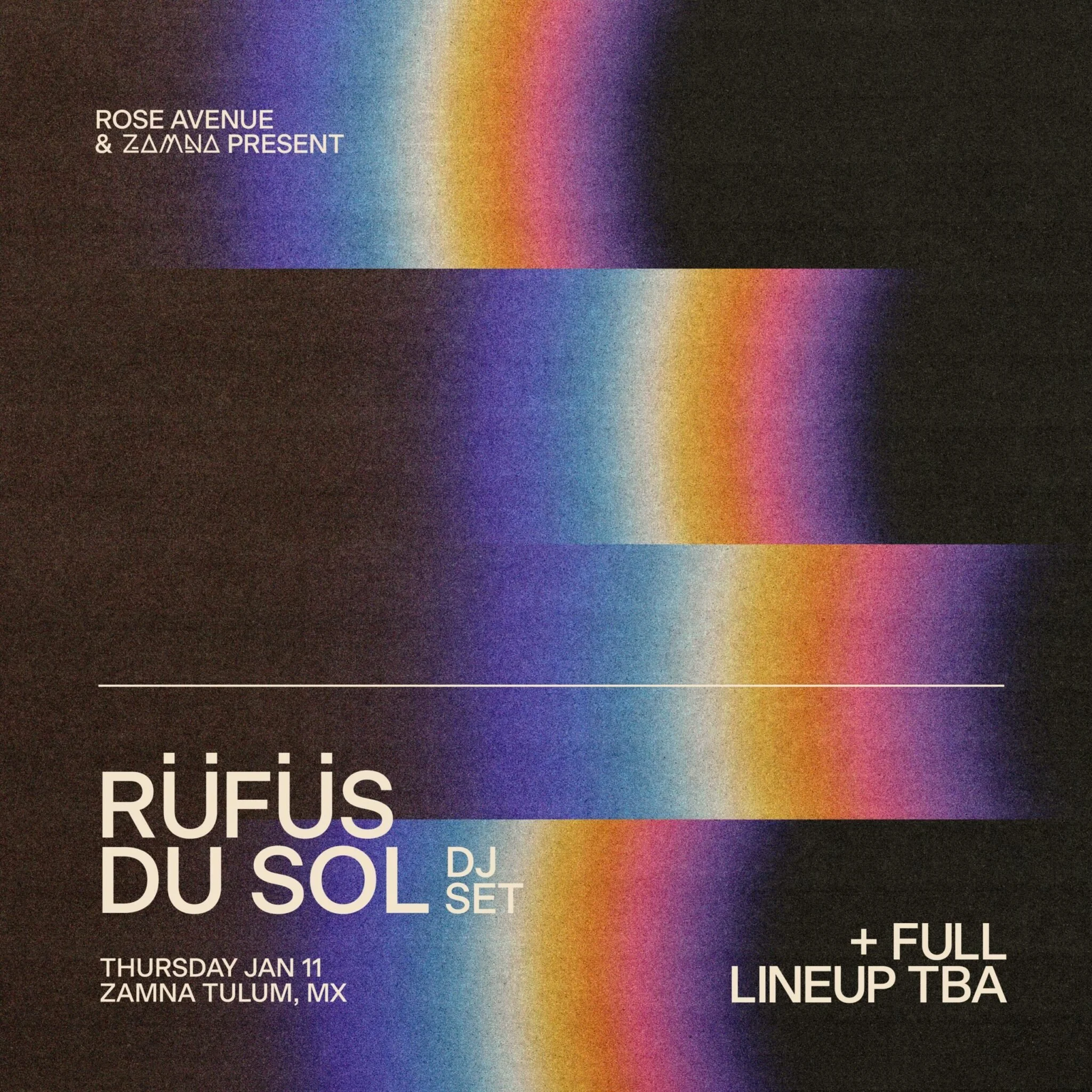 Don't miss the highly anticipated Rüfüs du Sol event at Zamna on January 11. With melodic house and indie-electronic sounds, immerse yourself in a breathtaking performance against Tulum's jungle backdrop.